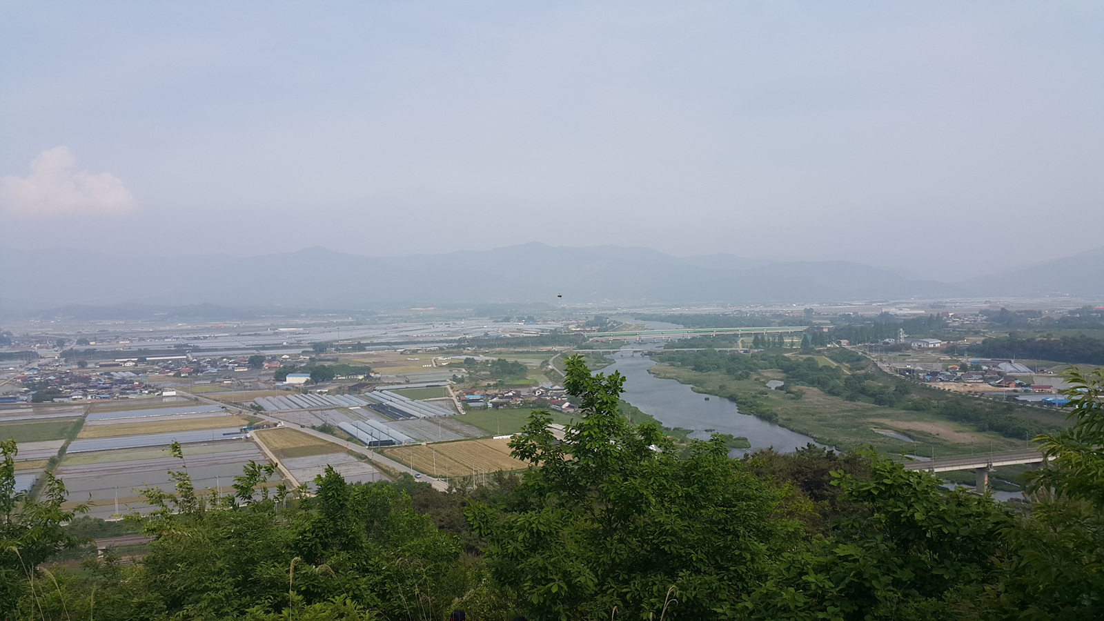 [삿갓봉에서 바라본 문덕봉과 교룡산,금지면 들판의 모습]