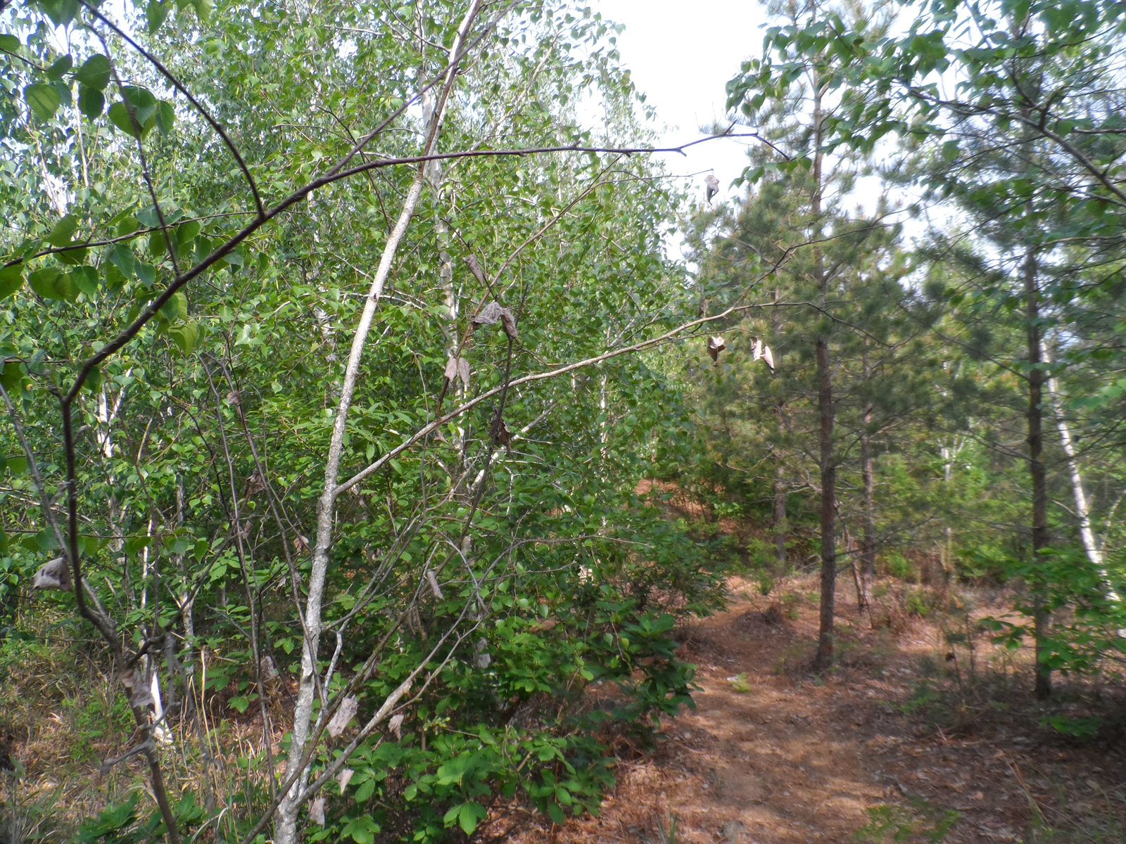 [ 자작나무 조림지 사이를 통과한다]
