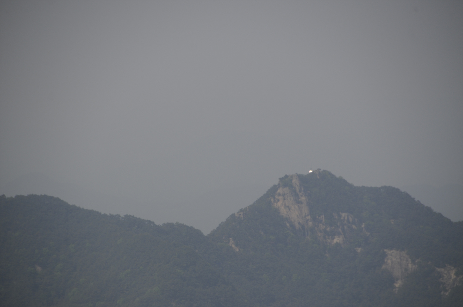 [당겨본 문덕봉의 모습.산불감시카메라 태양열판이 햇볕에 반사되어 빛이 난다]